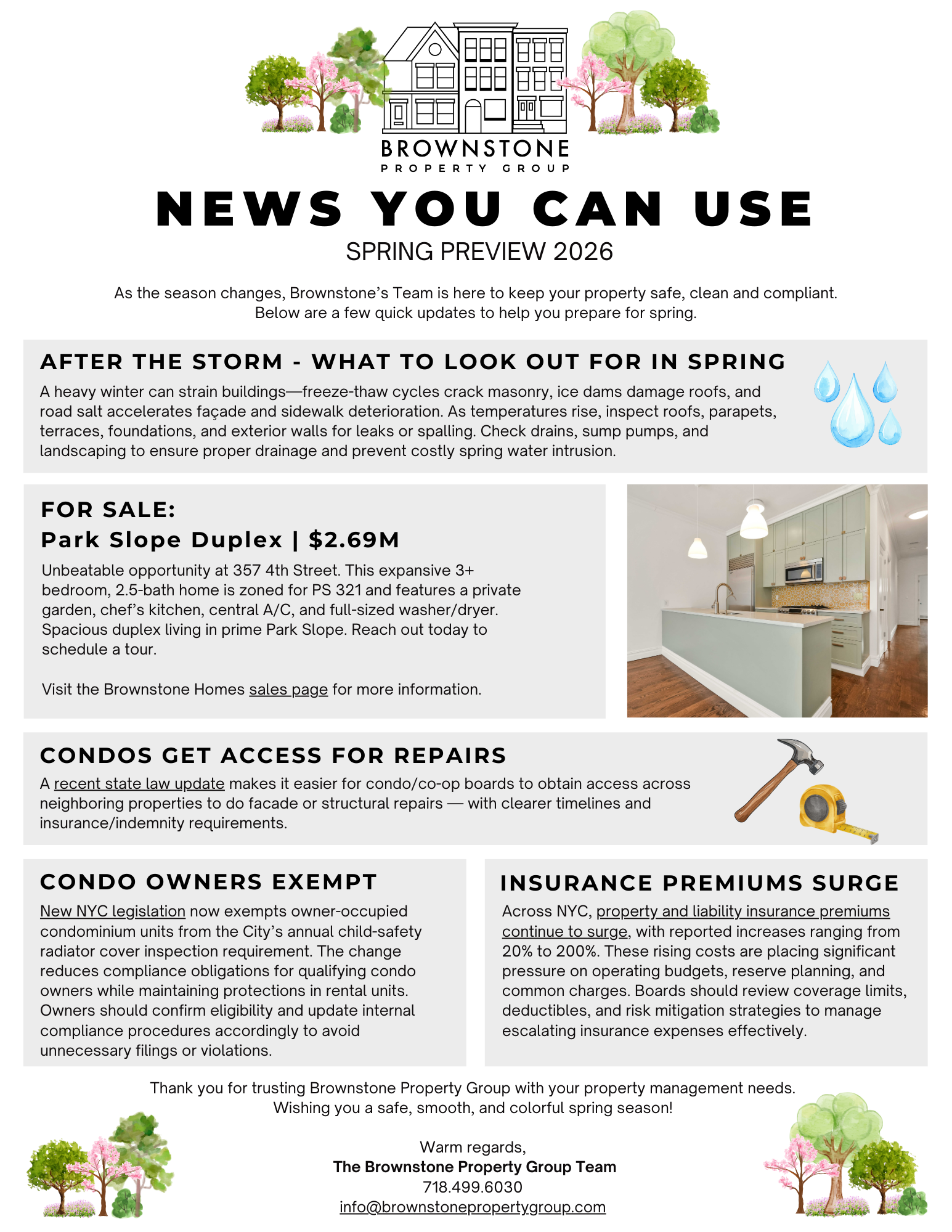 NEWS YOU CAN USE from Brownstone Property Group. Happy Spring!