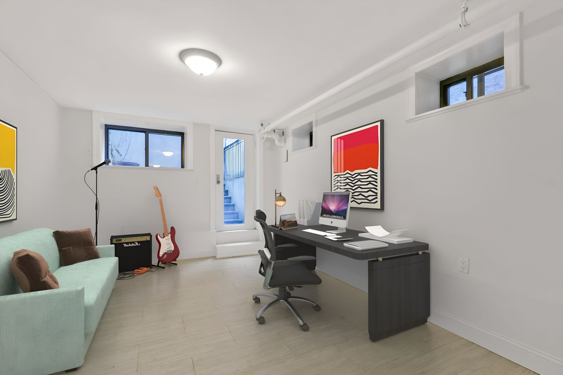 The serene, south-facing bedroom provides a peaceful retreat, while the lower level is incredibly versatile—a home office, guest suite, or cozy den—with a half bath and direct access to your private backyard patio. Imagine morning coffee in the sun or evening gatherings under the stars in your own Brooklyn oasis.