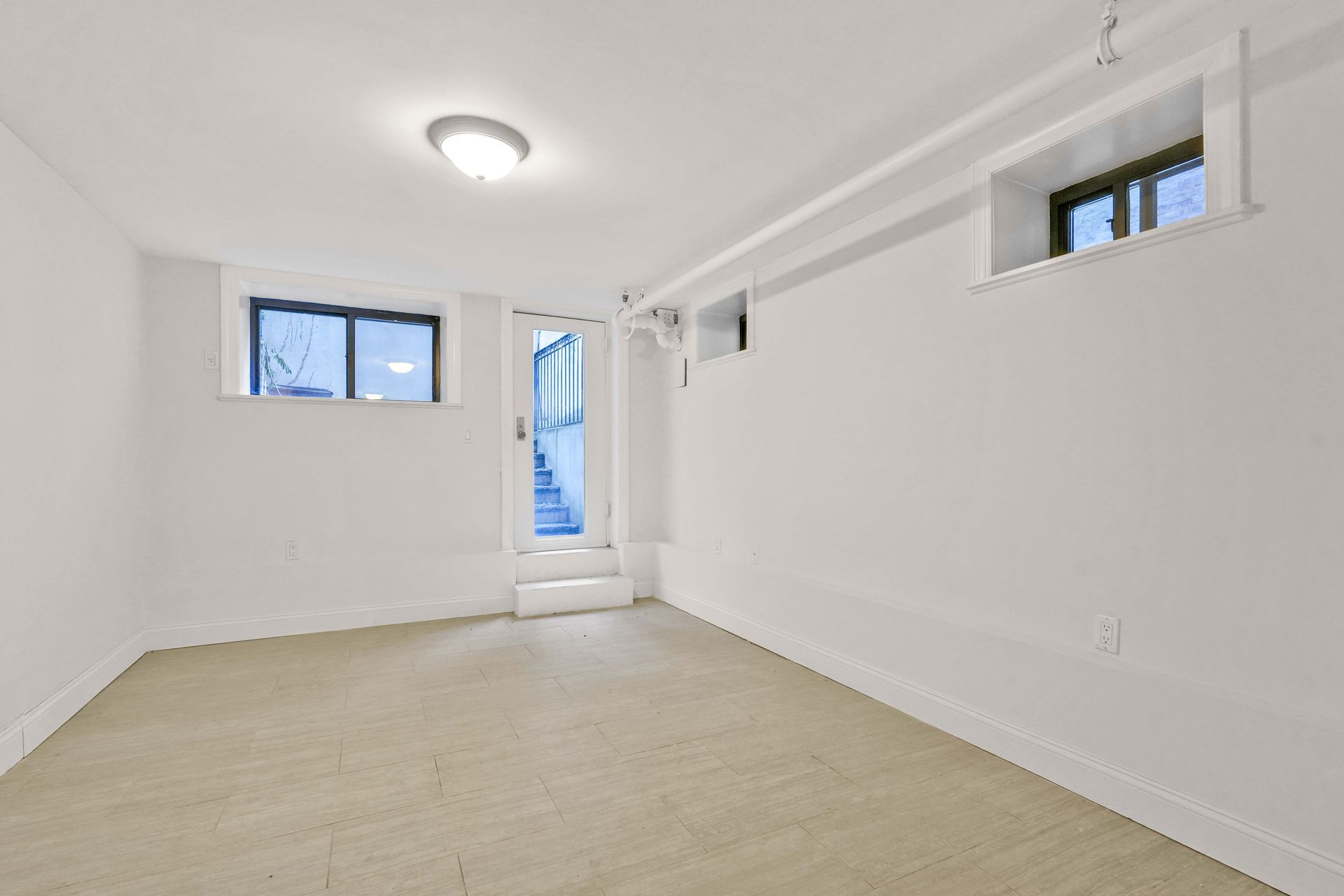 The entry door and striking newel post greet you as you enter the building. The light-filled parlor floor two-bedroom with a home office/den has a modern kitchen and bath, exposed brick, hardwood floors, excellent storage, and garden access. From the kitchen, step out on the deck and down to a delightful and peaceful garden ready for relaxation and pleasure. The 2nd-floor unit has three bedrooms, a living room, and a home office/den, and has retained some original details such as pocket doors and detailed moldings. The kitchen and bath are older style and in good working order. Each unit is spacious, with large windows allowing for lots of natural light. The spacious English Basement is finished with a sink and fridge and a three-quarter bathroom. It has a separate entrance under the stoop and is accessible from the parlor floor hallway, which makes it a great recreational space that opens to the garden.